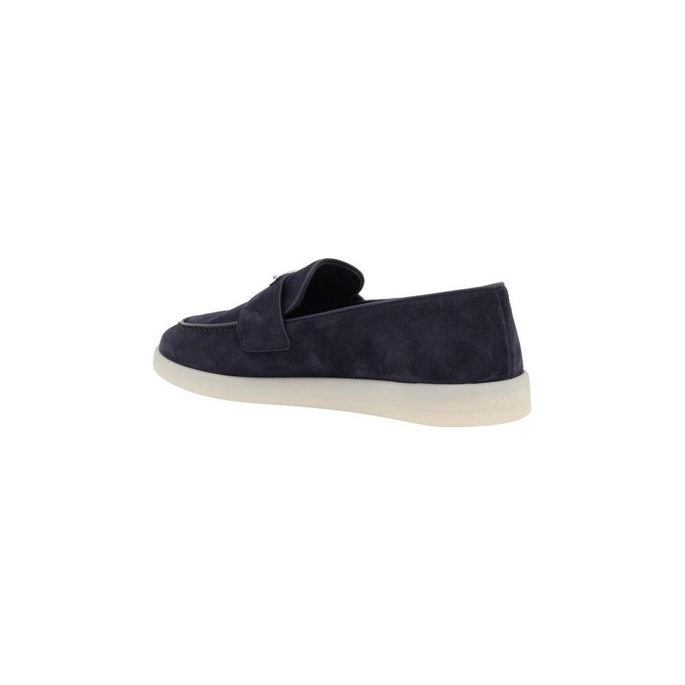 Prada’s leather Loafers feature an almond toe and a suede design that lends a touch of sophisticated elegance. The contrasting flat sole and front tray embellished with the brand’s iconic triangular plaque add a distinctive detail. The logo-embossed insole completes the look, making these loafers a refined and versatile accessory.