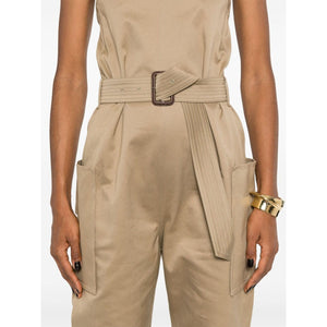 sesame beige cotton gabardine weave strapless belt loops belted waist detachable belt straight leg two side patch pockets concealed rear zip fastening We've partnered with Good On You — an independent agency that rates how brands perform in relation to their impact on the planet, people and animals, with a multi-criteria rating simplified to a five points scale. In order to be awarded our conscious label, larger brands need to score a minimum of four out of five ('Good'), while smaller brands must score at least three out of five ('It's A Start'). This item comes from a brand rated three out of five ('It's A Start') by Good on You at the time it was added on FARFETCH. Please note, this is a brand-level rating and does not guarantee that this product is made with conscious materials. Learn more about what makes a product Conscious on our Conscious Criteria page Cotton gabardine jumpsuit Size and Fit - This piece fits true to size. We recommend you get your regular size. Model is 1,75m / 5ft 8in wearing size 36 (FR)