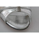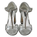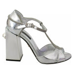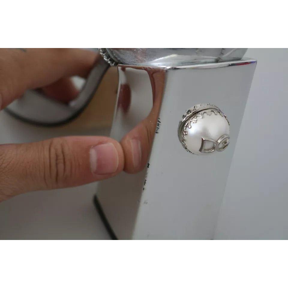 صندل دولتشي آند غابانا فضي رائع مستعمل مع العلامات، أصلي بنسبة 100%، بحزام على شكل حرف T مع كريستالات شفافة.