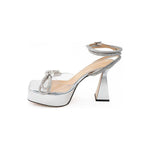 احصل على الفخامة مع هذه المنصات الجلدية الفضية من MACH & MACH. مثالي لأولئك الذين يقدرون الأناقة مع لمسة من الجرأة. لونها الفضي اللامع وبنيتها الجلدية عالية الجودة تجعلها إضافة مميزة لأي خزانة ملابس، ومصممة للإبهار في أي مناسبة.