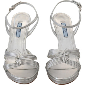 صندل برادا الأنيق ذو الكعب العالي باللون الفضي