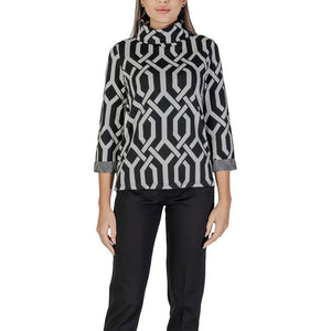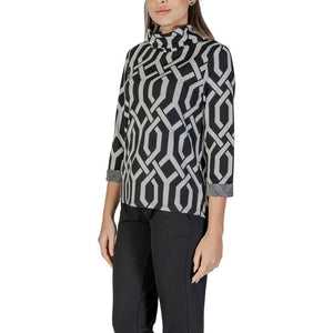 The Street One EOS women’s sweater with scarf collar and jacquard pattern is the perfect choice for those seeking both style and comfort in knitwear. Made from a blend of 63% polyester, 34% viscose, and 3% elastane/lycra, it offers a comfortable fit and pleasant stretch that moves with your body. The geometric jacquard design adds a modern and sophisticated touch, while the cozy scarf collar provides both style and practicality. Long sleeves with turned-up cuffs and a slightly fitted cut flatter the silhouette, making this sweater ideal for both casual and more refined outfits. Perfect for the autumn-winter season, it is a versatile piece to wear at the office, during leisure time, or for special occasions.