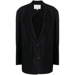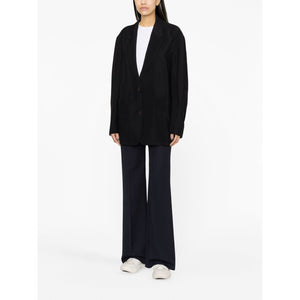 Conde single-breasted blazer from STUDIO NICHOLSON featuring black, crepe texture, notched lapels, drop shoulder, long sleeves, front button fastening, two front patch pockets and central rear vent. Cotton blend jacket Size and Fit - This piece fits true to size. We recommend you get your regular size. Model is 1,75m / 5ft 8in wearing size 1 (NUM)
