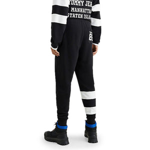 The Tommy Hilfiger Jeans TJM REG COLLEGE 85 S DM0DM15850 men’s sweatpants are the perfect choice for those seeking comfort and style in any casual setting. Crafted from 100% cotton, these pants deliver a soft feel and excellent breathability, ideal for leisure time and everyday wear. The design features a regular fit with elasticated cuffs and an adjustable drawstring waist for a customized fit. The distinctive contrasting bands on one leg add a modern and dynamic touch, making these pants easy to pair with sneakers and hoodies for a trendy, sporty look. The embroidered Tommy Hilfiger logo adds authenticity and a refined finish.