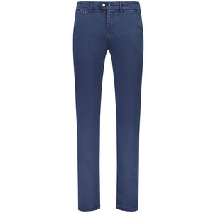 Elevate your wardrobe with Tramarossa’s exquisite chino trousers—where Italian craftsmanship meets modernity in a seamless blend. These trousers are polished with a super stretch blue cotton, ensuring both comfort and style. Detailed with two side pockets, two back welt pockets, and a sharp turn-up hem, they promise versatility for any occasion. Made with precision in Italy, these are more than just pants; they’re an expression of class.