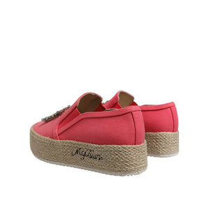 • Twinset Pink Canvas Crystal Embellished Slip On Shoes