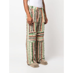 stripe-print cotton-blend trousers from VITELLI featuring elasticated drawstring waistband, two side inset pockets, rear patch pocket, emerald green, multicolour, wool, cotton, linen and stripe print. Patched cotton blend wool trousers Size and Fit - This piece fits true to size. We recommend you get your regular size. Model is 1,84m / 6ft 1in wearing size 2 (NUM)