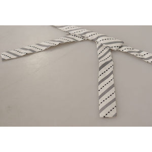 Dolce & Gabbana White Black Polka Dot 100% Silk Neck Papillon Bow Tie FT3703