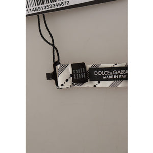 • Dolce & Gabbana White Black Polka Dot 100% Silk Neck Papillon Bow Tie FT3703