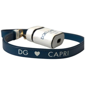 حافظة سماعات Airpods من دولتشي آند غابانا مصنوعة من جلد العجل باللون الأبيض والأزرق بطبعة شعار