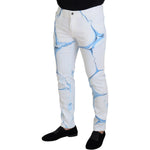 انغمس في مثال الحرفية الإيطالية مع هذا الجينز الأبيض الكاجوال، والمزين بتفاصيل زرقاء رقيقة، من مجموعة دولتشي آند غابانا الرائعة. صُمم هذا الجينز ليمنحك مظهرًا نحيفًا، وهو دليل على الفخامة والتفرد. يضمن المزيج المثالي من الراحة والأناقة أن يبرز هذا الجينز بالرقي والأناقة. استمتع بمزيج من أحدث صيحات الموضة والفن الذي يمكن ارتداؤه مع هذا الزوج المذهل الذي يعكس جوهر روح التصميم لدى Dolce & Gabbana.