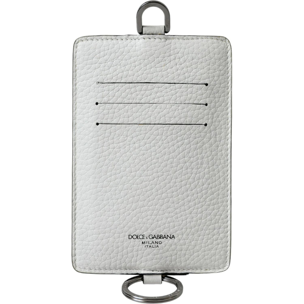 محفظة دولتشي آند غابانا بحامل بطاقات من جلد العجل باللون الأبيض مع شعار