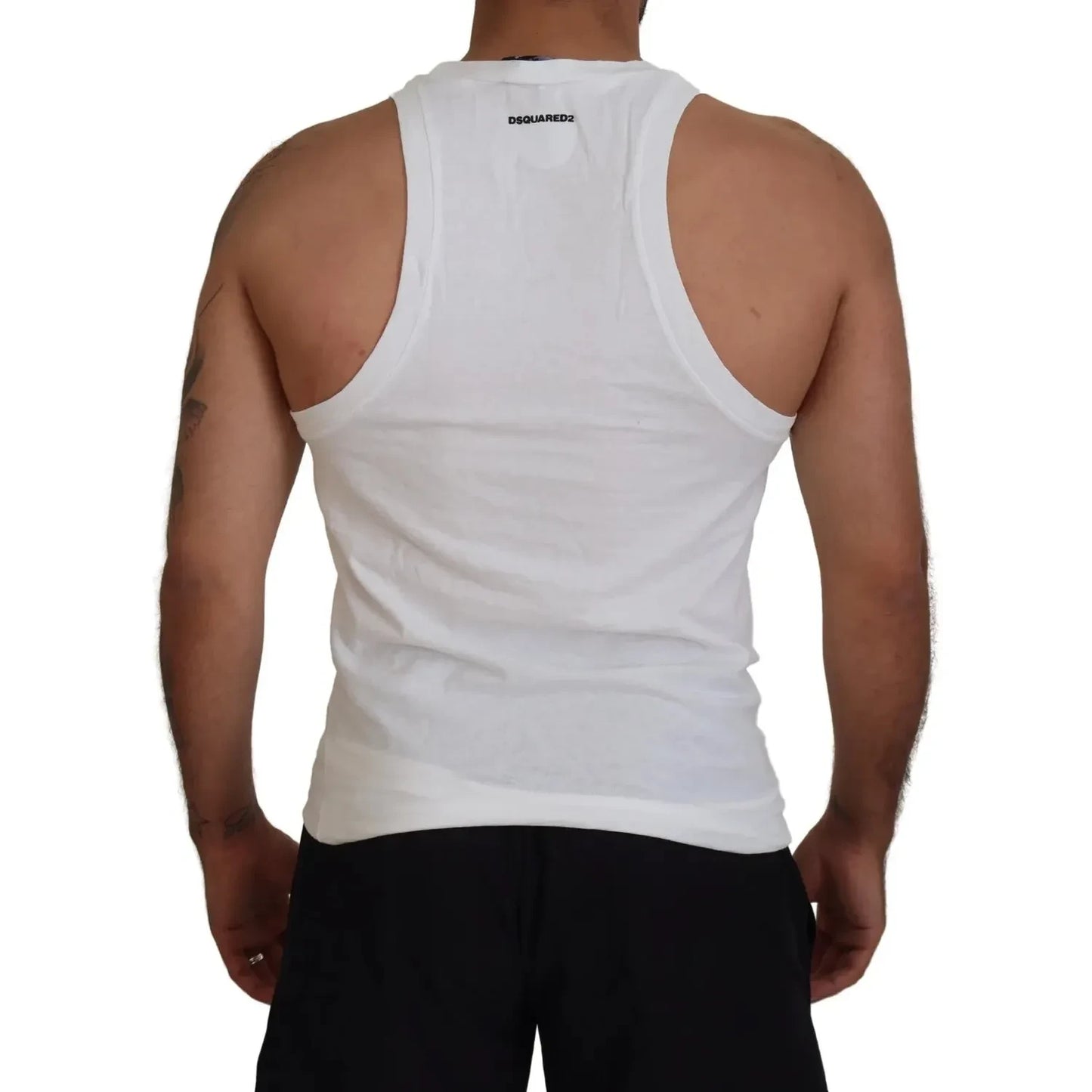 تي شيرت دبابة بدون أكمام من القطن والكتان باللون الأبيض من Dsquared²