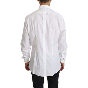 قميص دولتشي آند غابانا الأنيق المصنوع من القطن باللون الأبيض والمُصمم باللون الذهبي