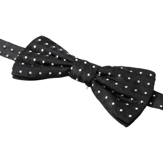 Dolce & Gabbana Black Polka Dot Silk Adjustable Men Neck Papillon Bow Tie