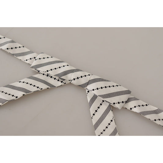 Dolce & Gabbana Black White Geometric 100% Silk Adjustable Accessory Tie
