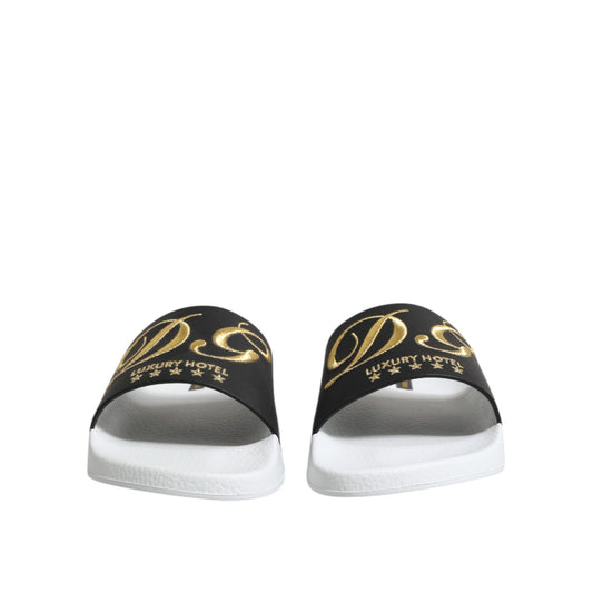 Dolce & Gabbana Black Leather Slides Flats Beachwear Shoes