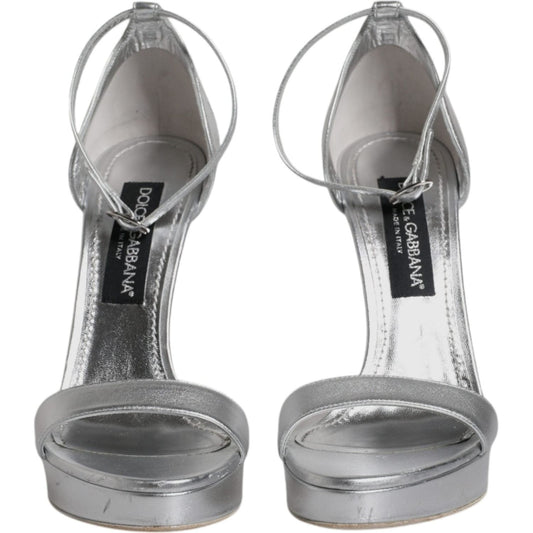 Dolce & Gabbana Silver Leather Platform Heels Sandals Shoes