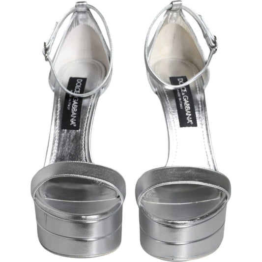 Dolce & Gabbana Silver Keira Leather Heels Sandals Shoes