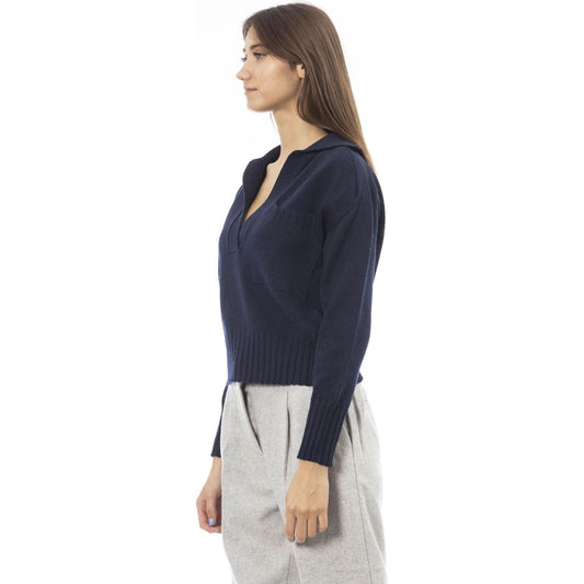 Just Cavalli Blue Floral Lace Long Sleeves Top Underwear Blouse