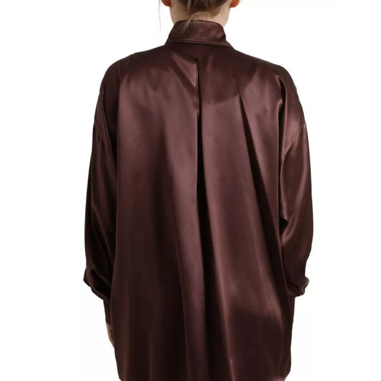 Dolce & Gabbana Brown Silk Collared Long Sleeves Top Blouse