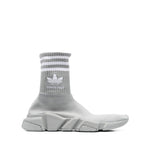 x Adidas Speed sock-style sneakers from BALENCIAGA featuring grey, white, knitted construction, ribbed knit, embroidered logo to the side, stripe detailing, sock-style ankle, almond toe and chunky rubber sole. Conscious: We've partnered with Good On You – an ethical agency that rates how sustainably brands perform. This item comes from a brand that performs well in relation to their impact on the planet.. Speed LT sneakers Size and Fit - Heel 1,6 in / 4 cm; Platform 0,8 in / 2 cm