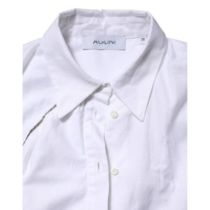 AGLINI White Cotton Collared Long Sleeves Ruffle Top Shirt