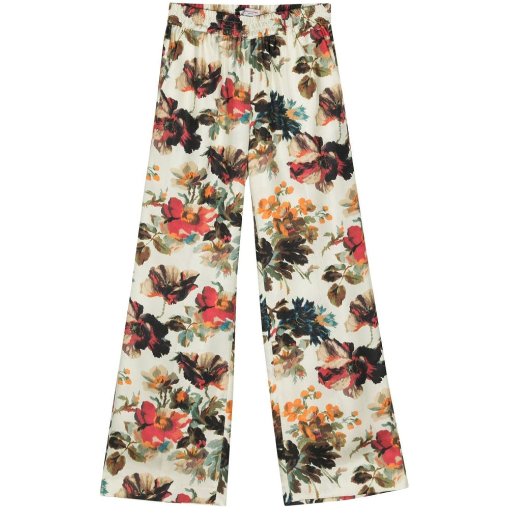 green/multicolour silk textured finish all-over floral print two side slash pockets pressed crease straight leg elasticated waistband Printed silk wide-leg trousers Size and Fit - This piece fits true to size. We recommend you get your regular size. Model is 1,75m / 5ft 8in wearing size 40 (IT)
