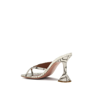 Amina Muaddi’s python-patterned Shiona Sandals feature a python-effect goatskin upper and leather sole. The slip-on design ensures practicality and elegance, while the padded insole and lining offer superior comfort. Completing the design is the iconic sculptural heel, the brand’s distinctive signature, for a bold and sophisticated look.