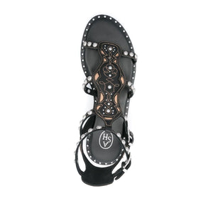 black calf leather embroidered design silver-tone stud embellishment round open toe branded leather insole flat leather sole silver-tone hardware side buckle fastening buckle-fastening ankle strap This piece comes complete with a protective dust bag. Plaza studded leather sandals Size and Fit - Heel 0,8 in / 2 cm Platform 0,4 in / 1 cm