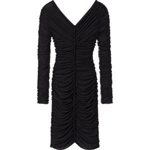 ruched off-shoulder dress from AZ FACTORY featuring black, stretch-design, off-shoulder, ruched detailing, ruffled detailing, long sleeves and thigh-length. V-neck short dress Size and Fit - This piece fits true to size. We recommend you get your regular size. Model is 1,75m / 5ft 8in wearing size 36 (FR)