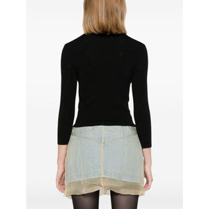 black wool blend open knit BB pattern crew neck long sleeves straight hem cropped unlined Open-knit wool top