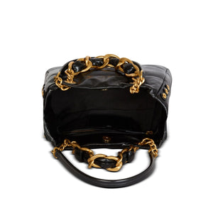 black calf leather embossed monogram pattern gold-tone logo lettering eyelet detailing two leather and chain-link shoulder straps two leather and chain-link top handles gusset detail concealed magnetic fastening main compartment internal zip-fastening pocket internal card slot metal feet 1945 small tote Size and Fit -  .
