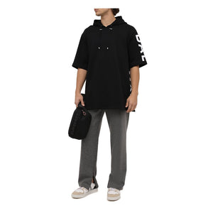 Discover the epitome of urban chic with the Balmain black cotton sweatshirt, tailored for the fashion-forward. This half-sleeve wonder boasts the iconic logo print that cascades with elegance down the side, offering a signature touch to your wardrobe. Featuring a practical drawstring hood, it’s a perfect blend of comfort and luxe style. Exude confidence in this must-have piece from Balmain’s refined collection.