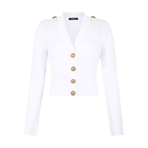 Balmain Button-Trim Cable-Knit Cardigan Topwear