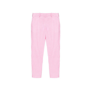 Elevate your wardrobe with the chic allure of Balmain’s cotton pants, boasting an eye-catching pink and white check print. These stylish bottoms feature a sleek zipper and hook-and-eye closure for a secure fit. The design includes practical elements like two side and two back pockets, offering utility without compromising on elegance. Balmain’s renowned craftsmanship ensures that these pants aren’t just about fashion but also about quality and durability. Make a statement with this Parisian fashion staple.