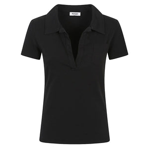 Black polo shirt, half sleeves, patch pocket on the chest, straight hem. Cotton polo shirt Size and Fit - This piece fits true to size. We recommend you get your regular size. Model is 1,75m / 5ft 8in wearing size 40 (IT)