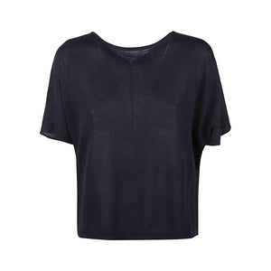 Blu cotton blend shortsleeves crewneck top. Cotton blend top Size and Fit - This piece fits true to size. We recommend you get your regular size. Model is 1,75m / 5ft 8in wearing size 40 (IT)
