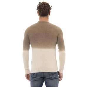 Indulge in the epitome of sophistication with Alpha Studio’s Crewneck Sweater. A blend of Alpaca Leather accents and cozy materials like Cotton and Modal ensures you stay stylish without compromising on comfort. The ribbed collar, cuffs, and bottom add a structured yet relaxed silhouette. Perfect for layering, this beige sweater exudes a sense of understated luxury, reflecting your impeccable taste. Crafted in Italy, it’s a testament to timeless elegance and quality craftsmanship.