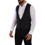 Dolce & Gabbana Black Striped Wool Silk Waistcoat Vest