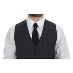 Dolce & Gabbana Black Striped Wool Single Breasted Vest