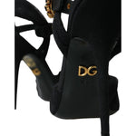 Dolce & Gabbana Black Suede Embellished Heels Sandals Shoes