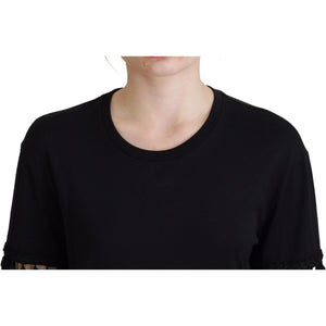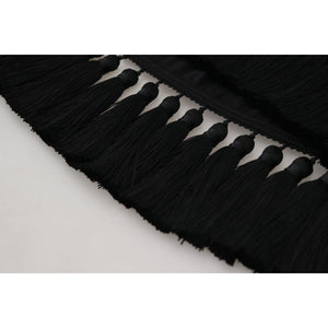 Dolce & Gabbana Black T-shirt Blouse Tassle Cotton Blouse
