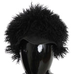 Dolce & Gabbana Black Tibet Lamb Fur Leather Gatsby Hat