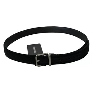 Dolce & Gabbana Black Velvet Leather Silver Buckle Belt