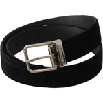 Dolce & Gabbana Black Velvet Silver Logo Engraved Metal Buckle Belt