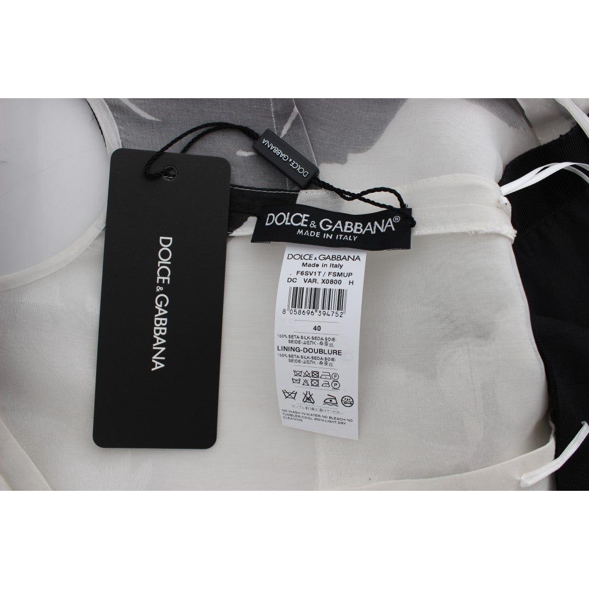 Dolce & Gabbana Black White Floral Silk Sheath Gown Dress