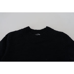 Dolce & Gabbana Black Wool Knit Crewneck Pullover Sweater