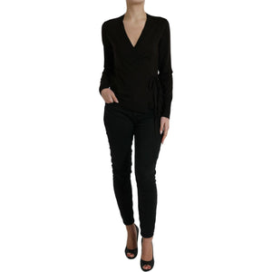 Dolce & Gabbana Black Wool V-neck Crossed Cardigan Sweater