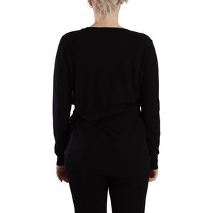 Dolce & Gabbana Black Wool V-neck Long Sleeves Pullover Top